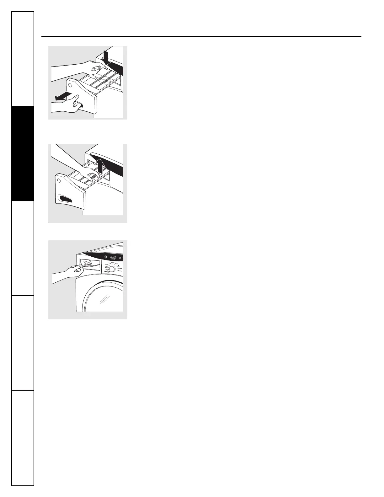 ■ Remove the drawer by first pulling it out until it stops. Then reach back into