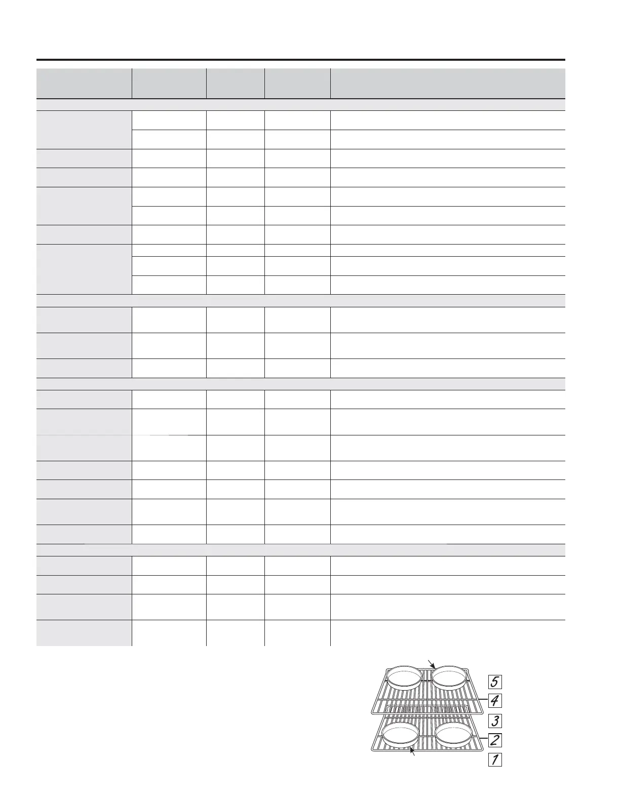 *Al hornear cuatro capas de torta a la vez, use los estantes 2 y 4.