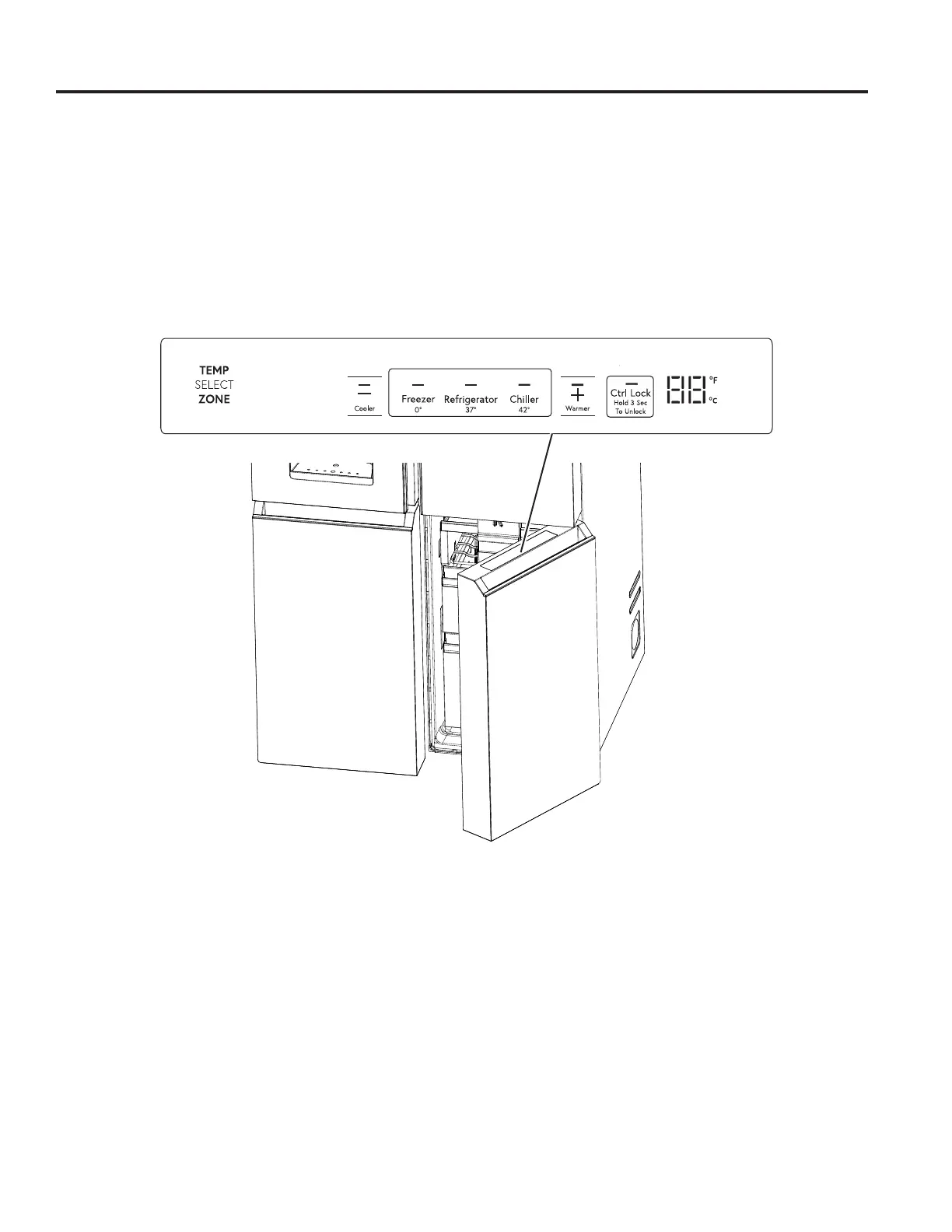 The Convertible Zone control panel is in the top of the lower right-hand door. Select the desired temperature for the