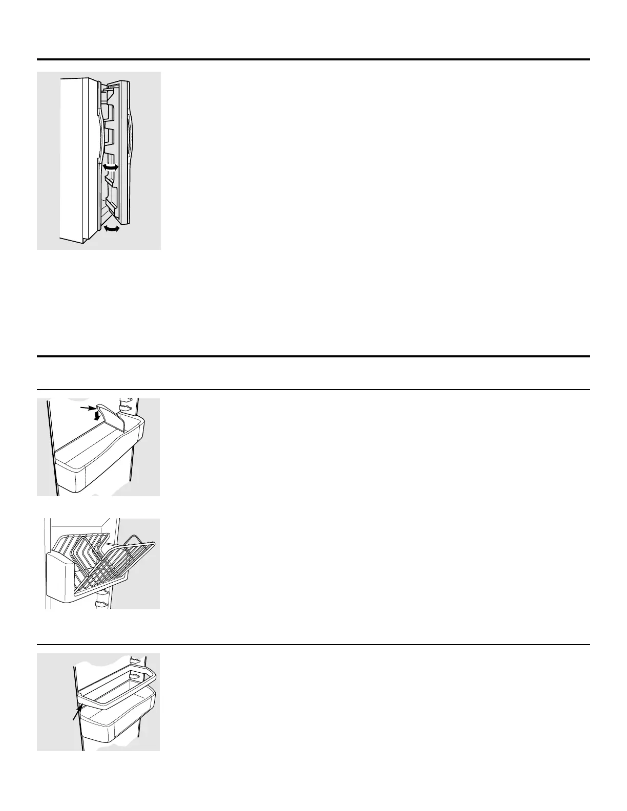 porte de réfrigérateur et les bacs basculants