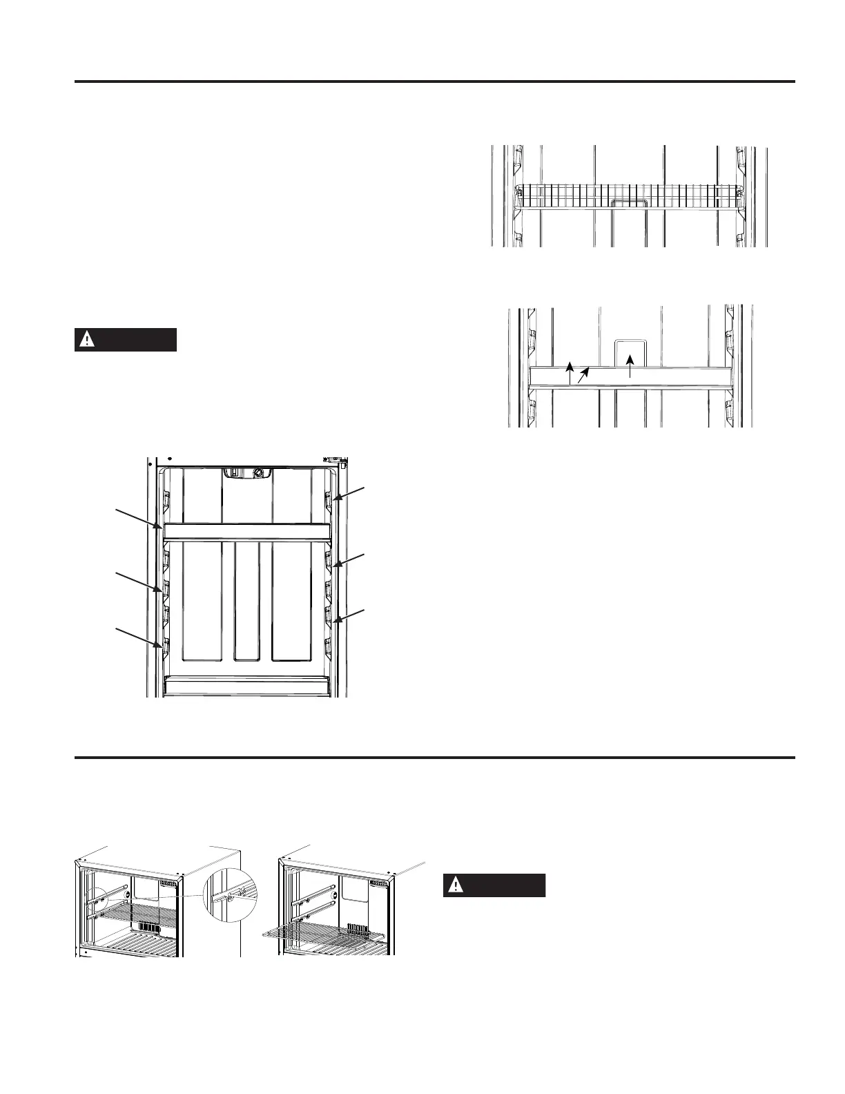 avec tablettes de verre, les positions de rail 2 et 4/5 sont