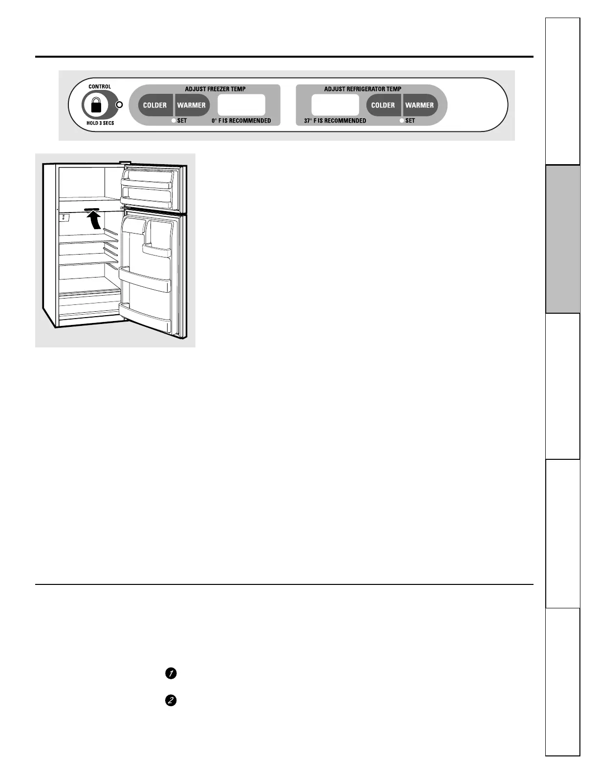 37° F para el refrigerador. Ajustar uno o ambos