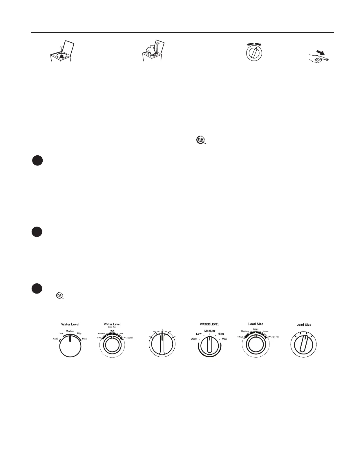 to ensure a larger water level is applied. Manual water level selections should be made for wet items placed in the washer, such as