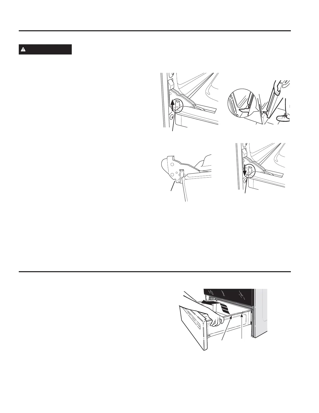 3. Levante el frente del cajón y empuje hasta que las trabas