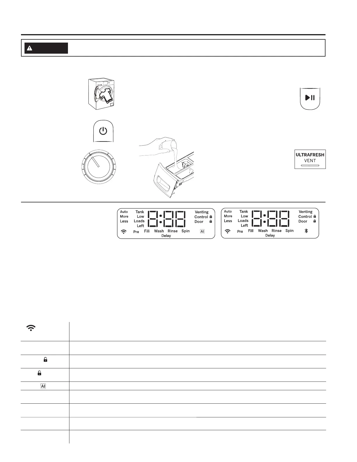 The controls on the washer are locked when this icon is illuminated. You must press and hold the Control