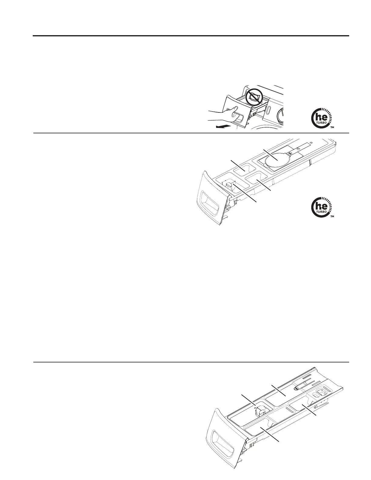 Ne mettez PAS de sachets de détersif dans le tiroir