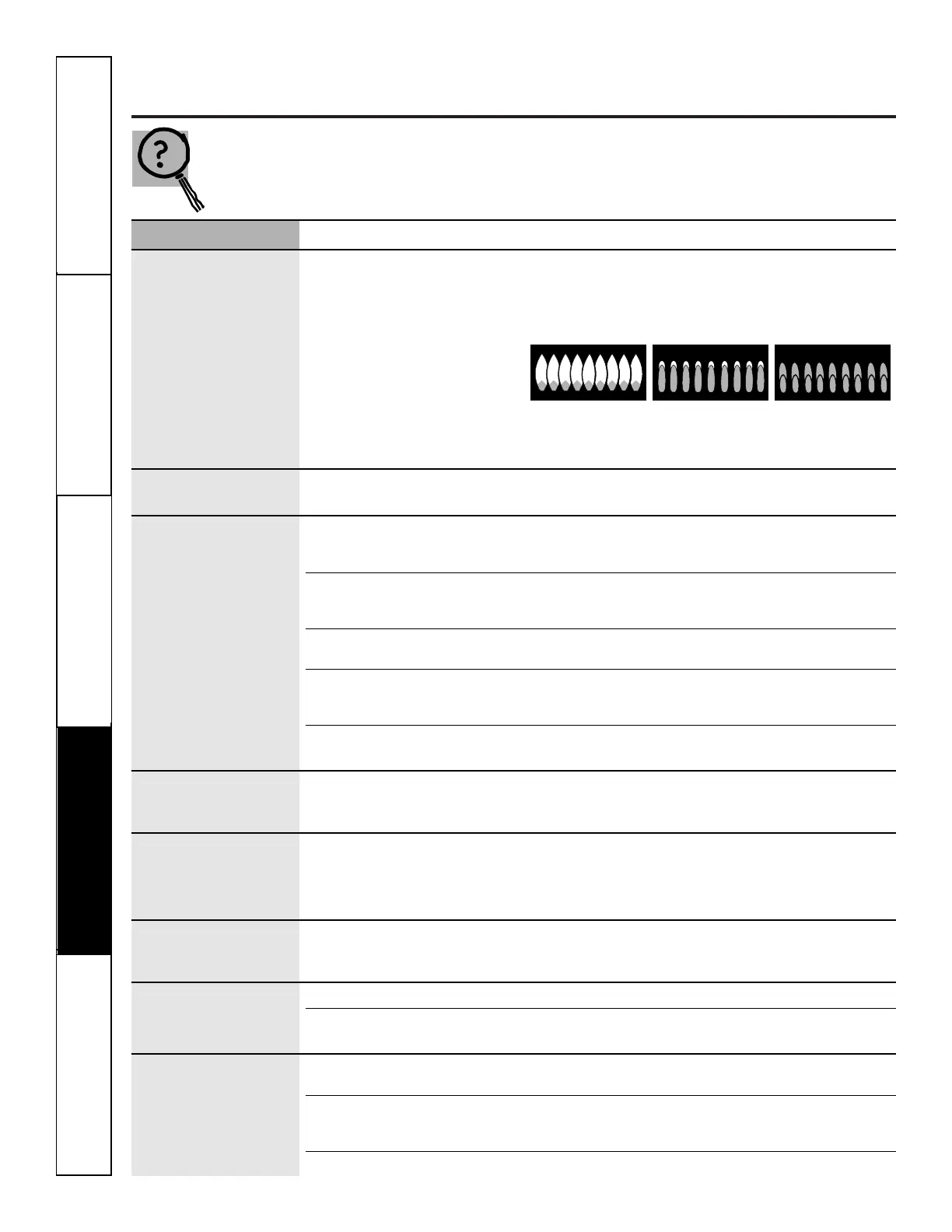 Burners have yellow or The combustion quality of • Use the illustrations below to determine if your burner