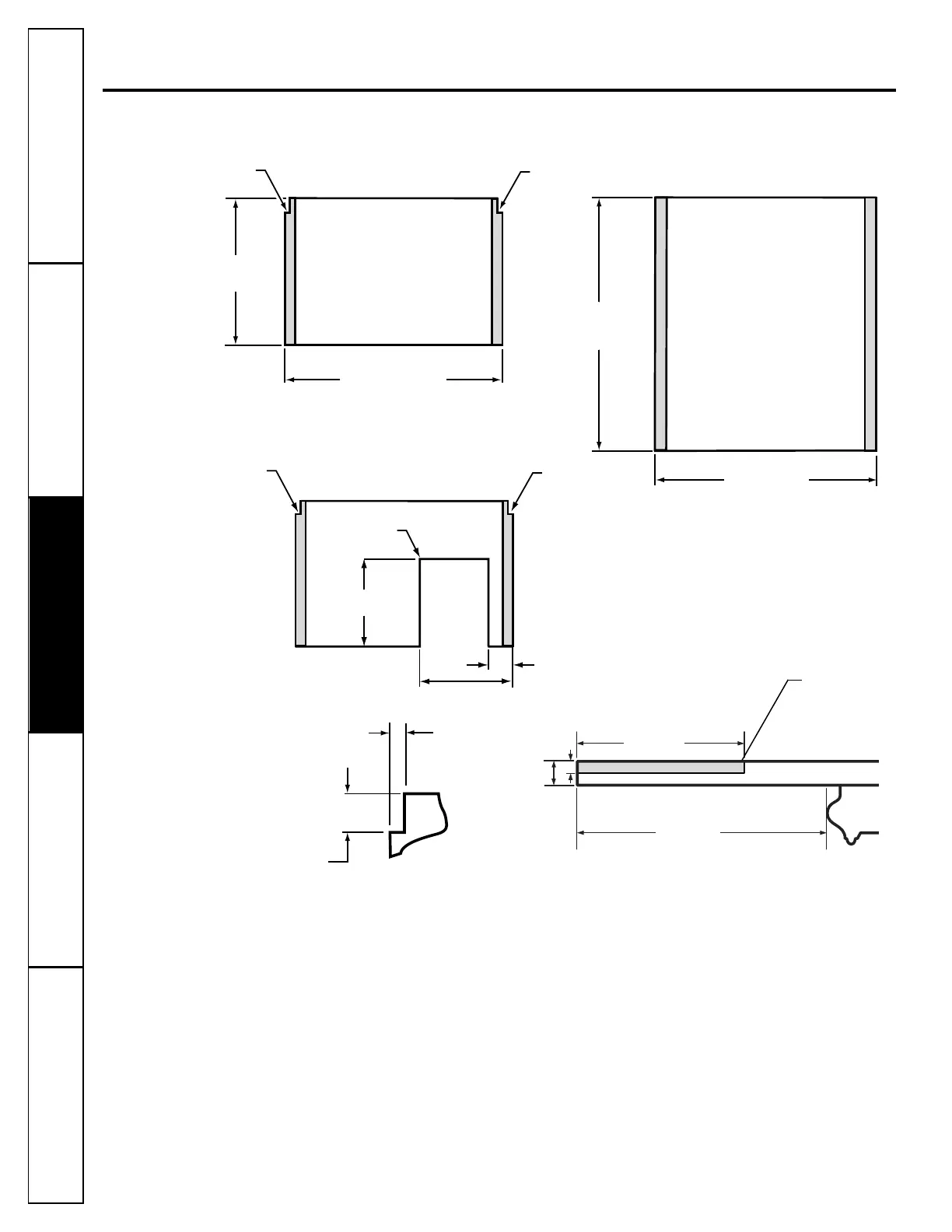 ■ The shaded areas indicate areas that must be routed out by 1/8″ (3 mm) on the backside