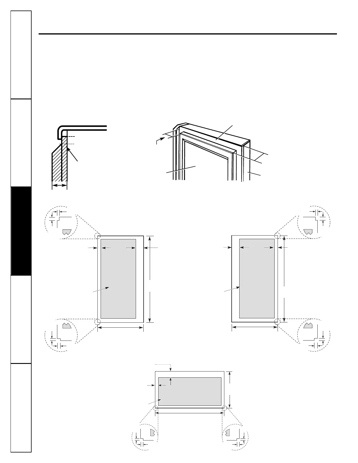 fresada de 3/4″ (19 mm). La parte elevada del panel debe fabricarse para permitir espacios libres de por lo menos 2″