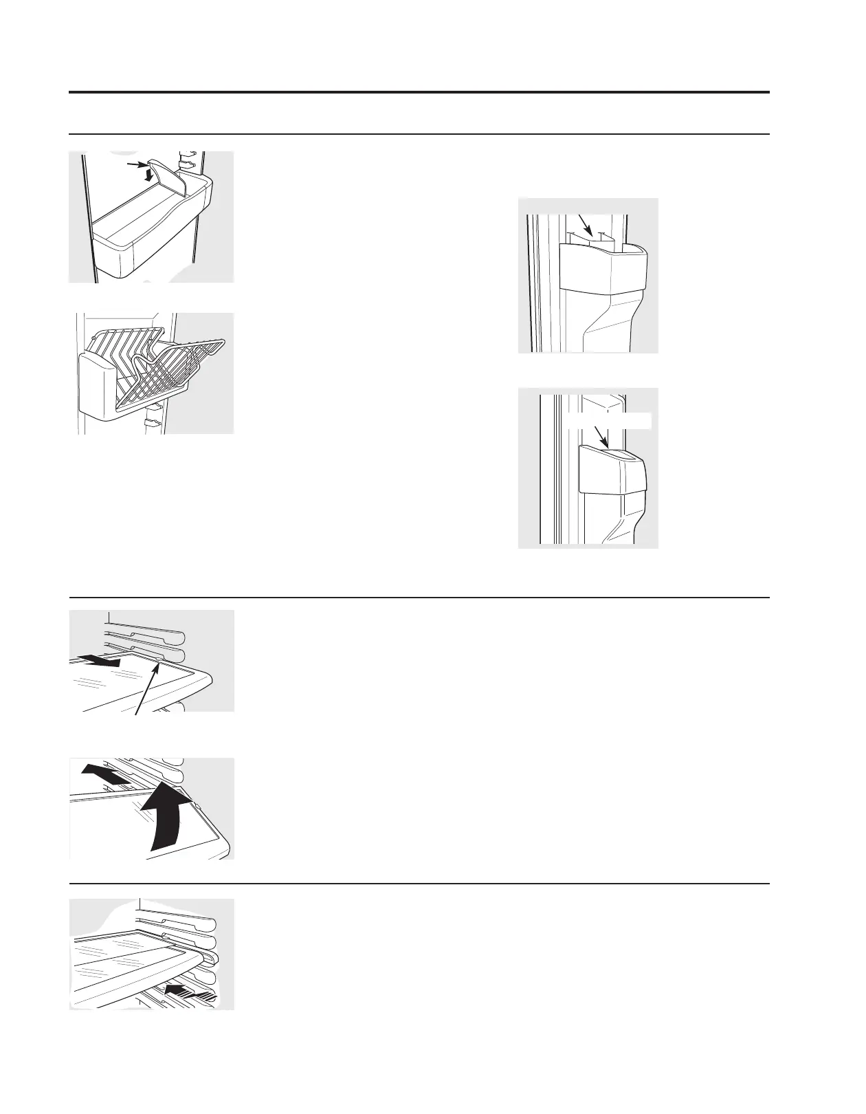 Bacs de porte de réfrigérateur et bacs basculants de porte de congélateur.