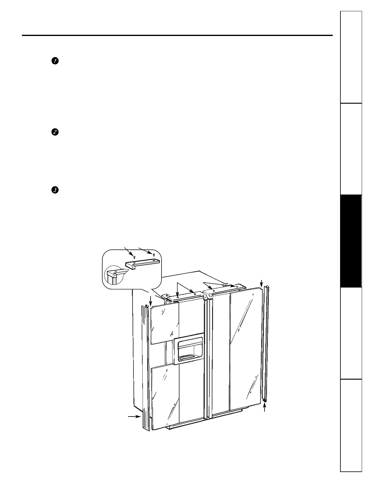 Attachez la moulure supérieure de la porte du congélateur et du réfrigérateur.