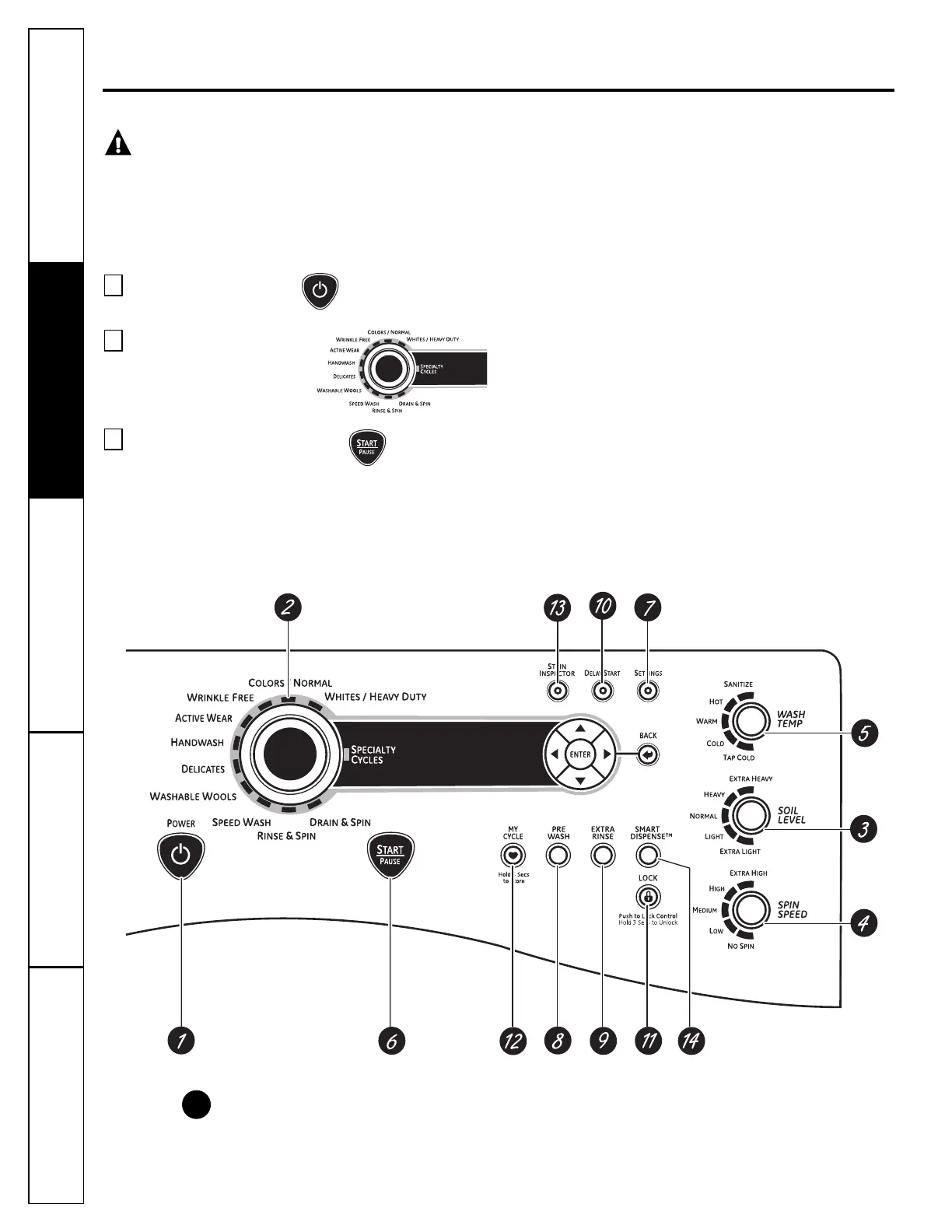Press to “wake up” the display. If the display is active, press to put the washer into standby mode.