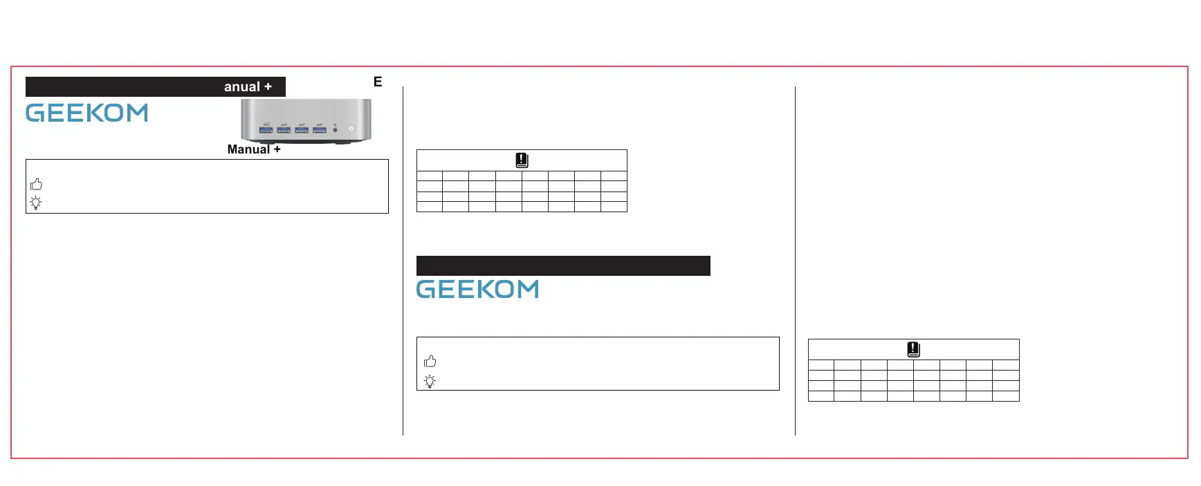 Kontaktieren Sie uns bitte unter support@geekom.de, wenn Sie Verbesserungsvorschläge haben.