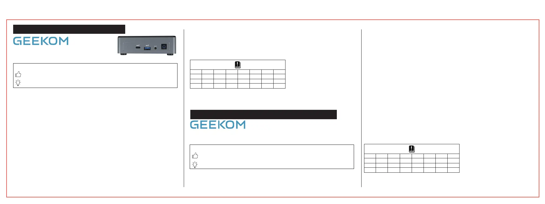 Kontaktieren Sie uns bitte unter support@geekom.de, wenn Sie Verbesserungsvorschläge haben.