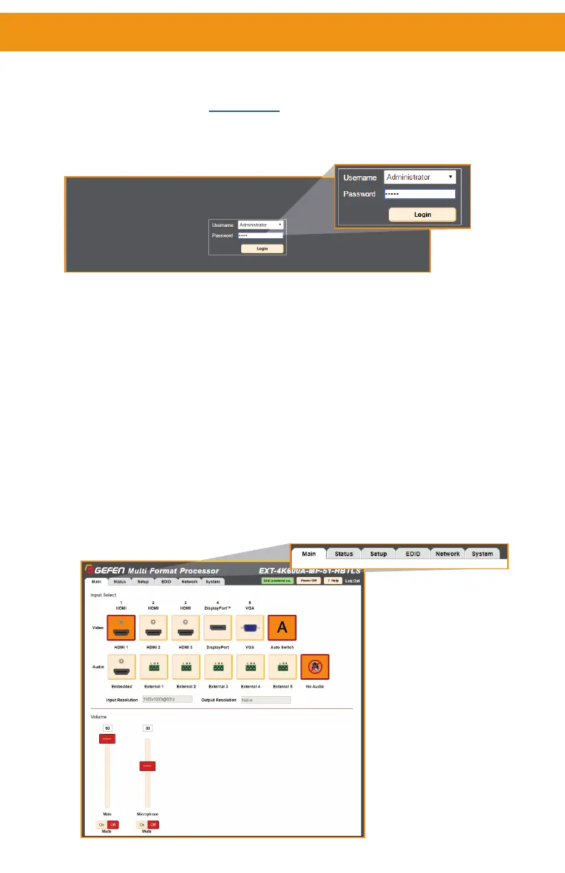 are ‘admin’ and ‘operator’. The Web Interface is divided into six tabs at the top of the