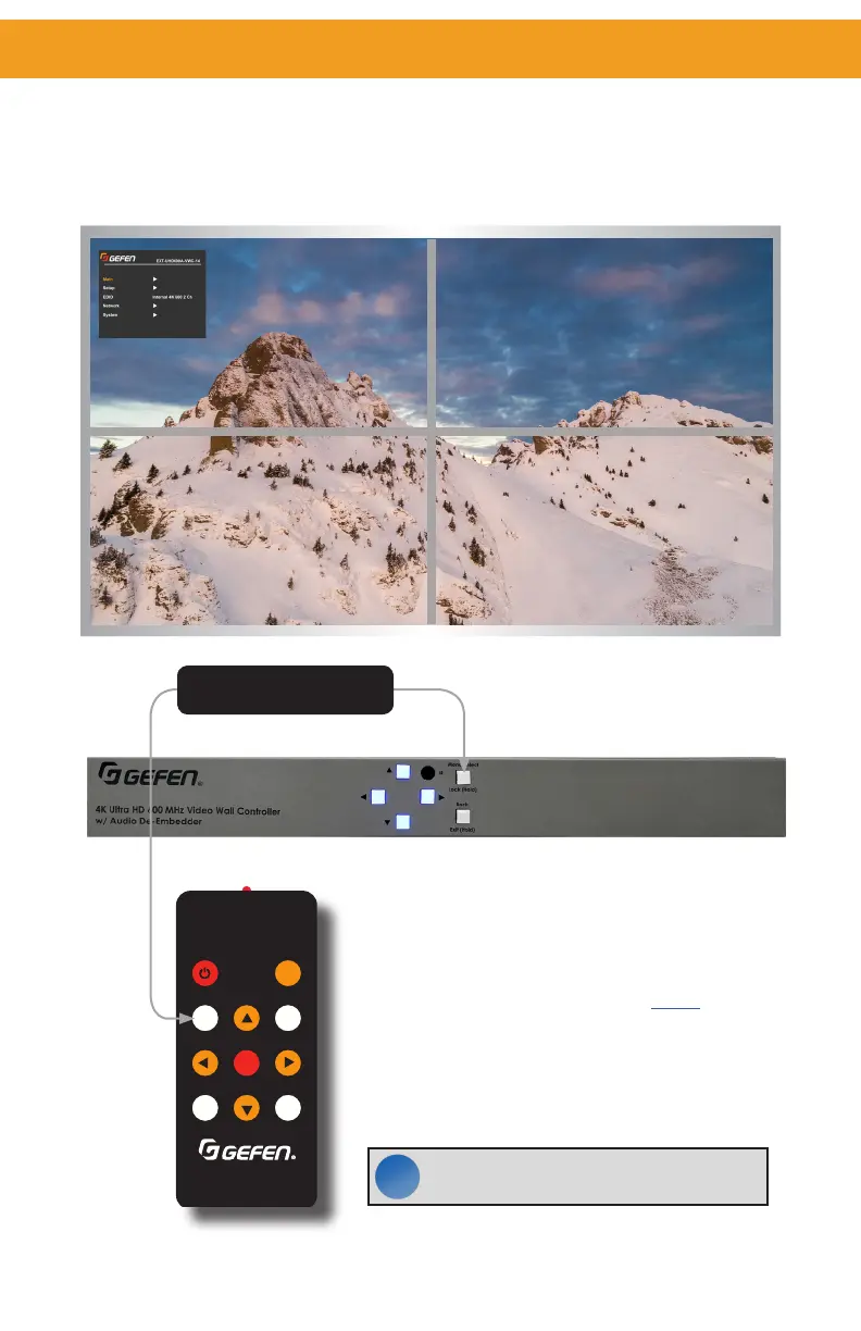 The 1x4 Video Wall Controller uses a built-in, On-Screen Display (OSD) menu system to