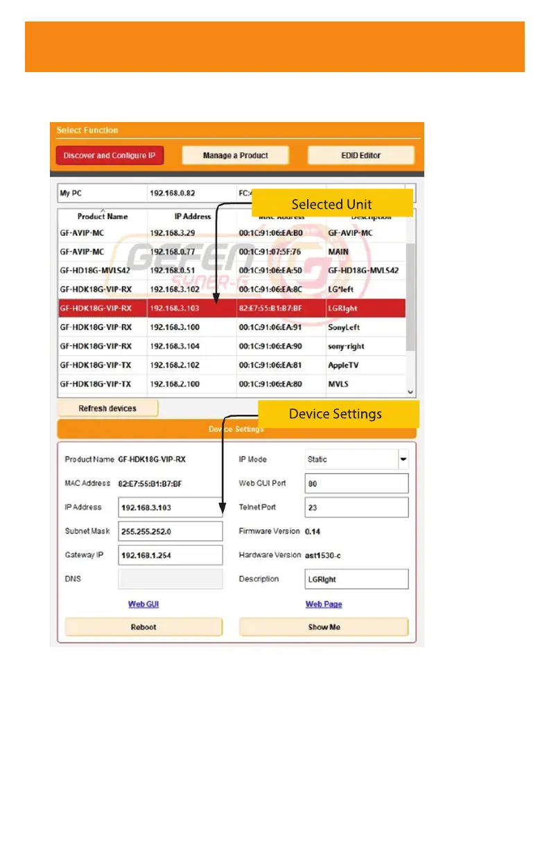 9. Use the elds in the Device Settings section to change the IP settings, as