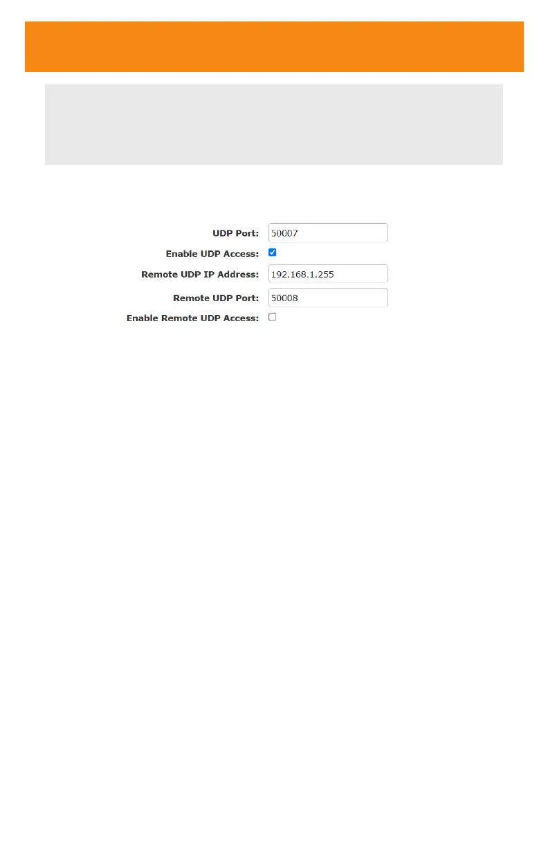 • Remote UDP IP Address: If enabling Remote UDP Access, enter the remote UDP IP