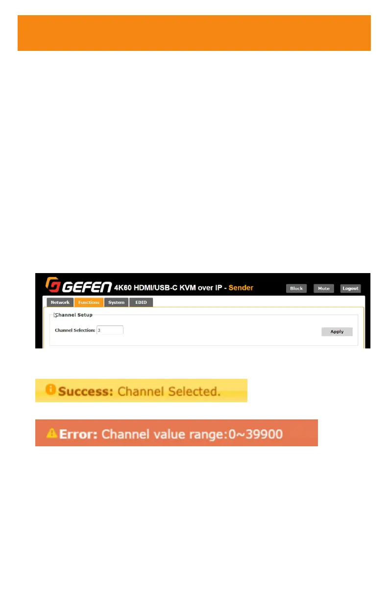 3. Click the Functions tab. The current channel is displayed within the Channel Setup