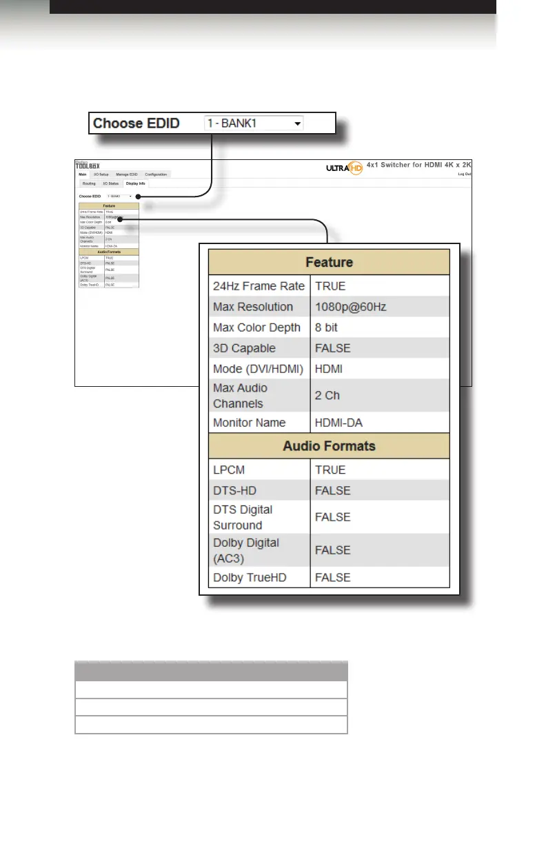 the Output or selected EDID Bank to the desired input(s) and used by the source.