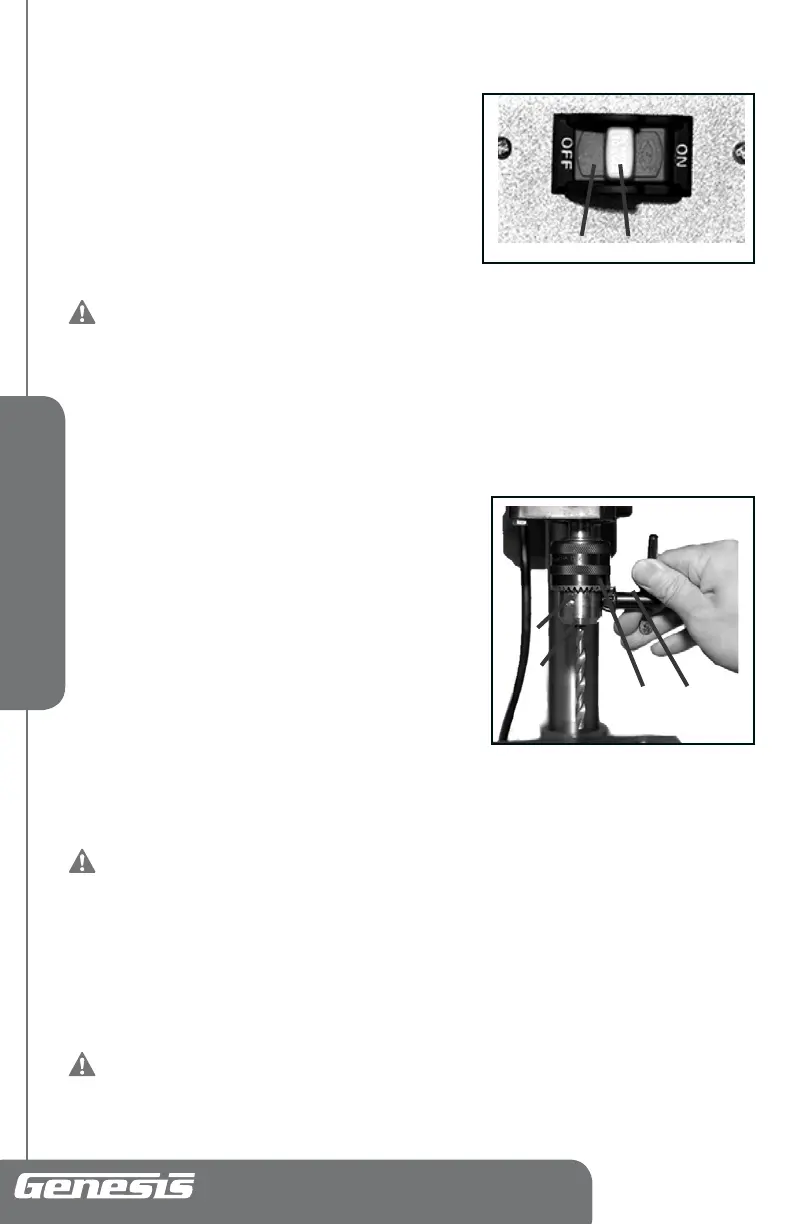AVERTISSEMENT: Assurez-vous que la clé du mandrin a été retirée