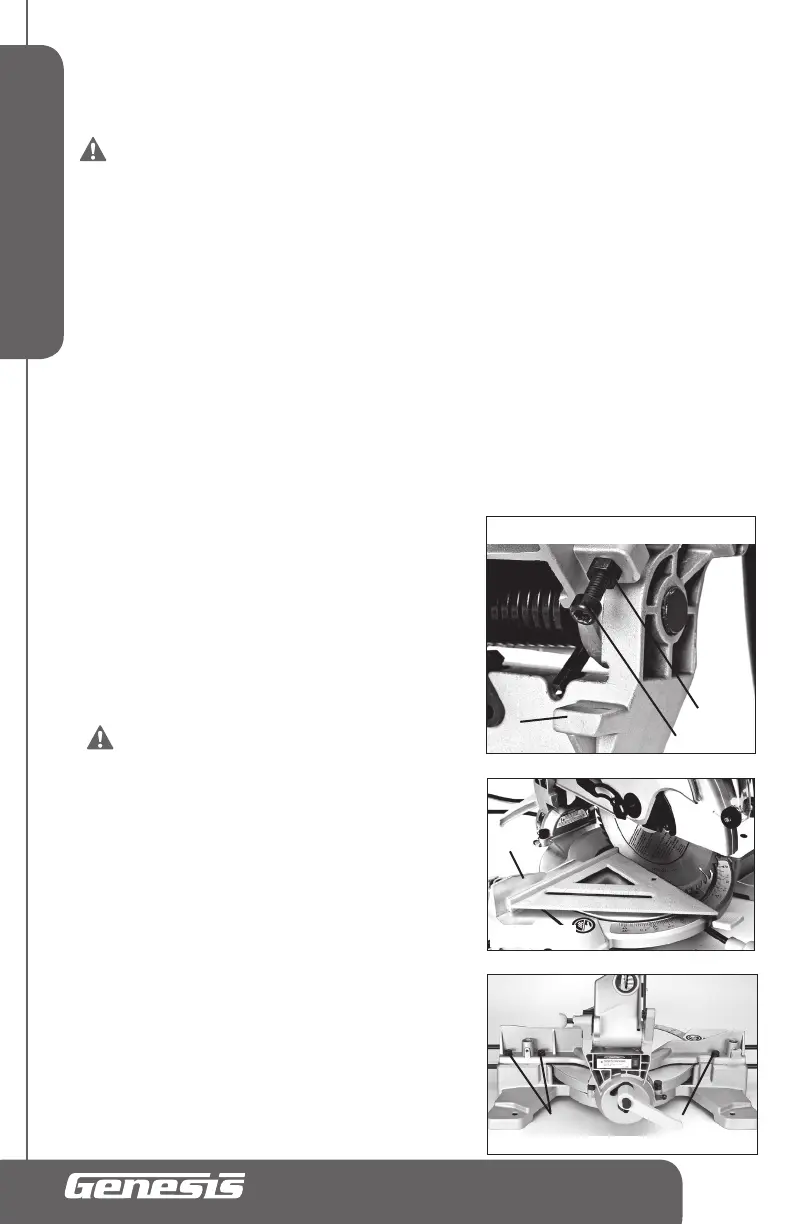 surfaces of the miter saw, to insure the blade completely cuts through the workpiece, and permit depth of cut