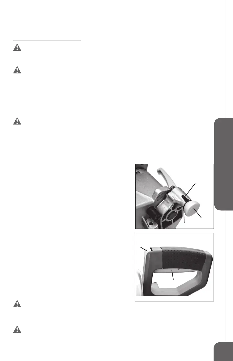 poignée supérieure de la scie, utiliser votre pouce pour appuyer