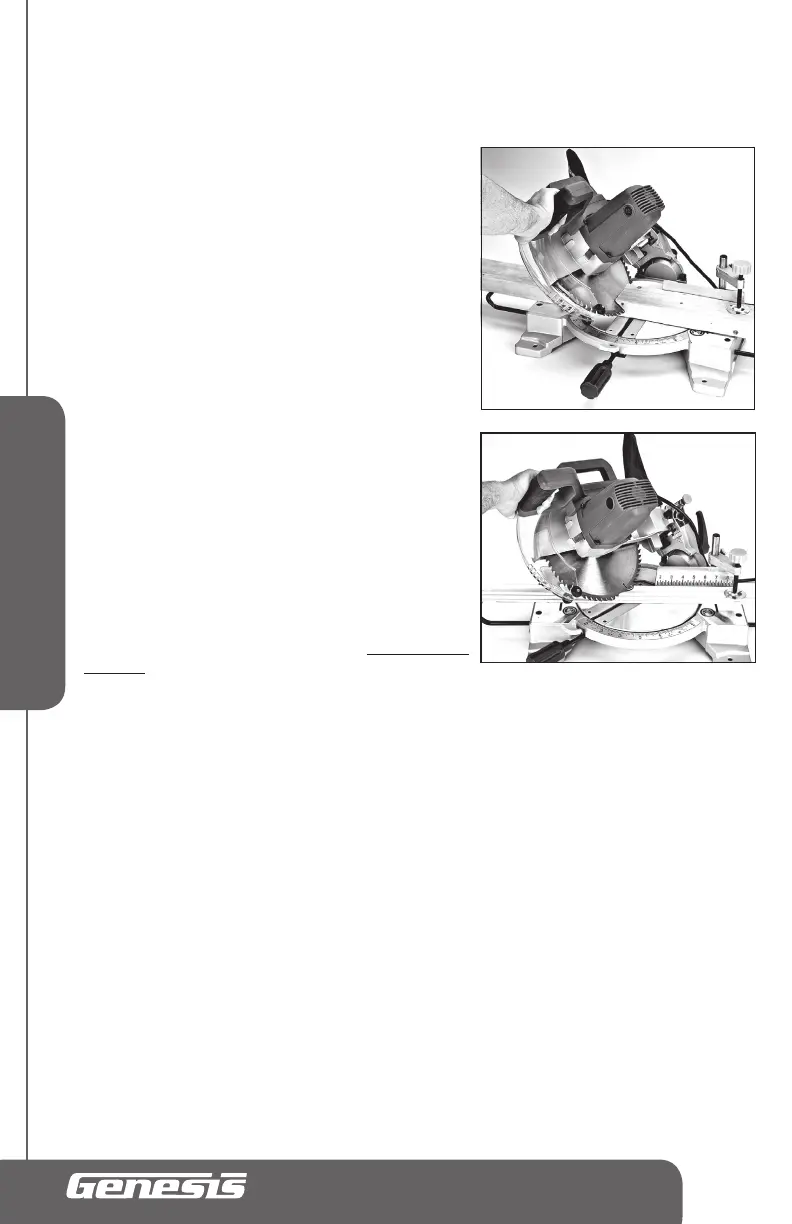 1. Fixez les angles d’onglet et de biseau comme décrit précédemment et verrouillez bien les poignées respectives.