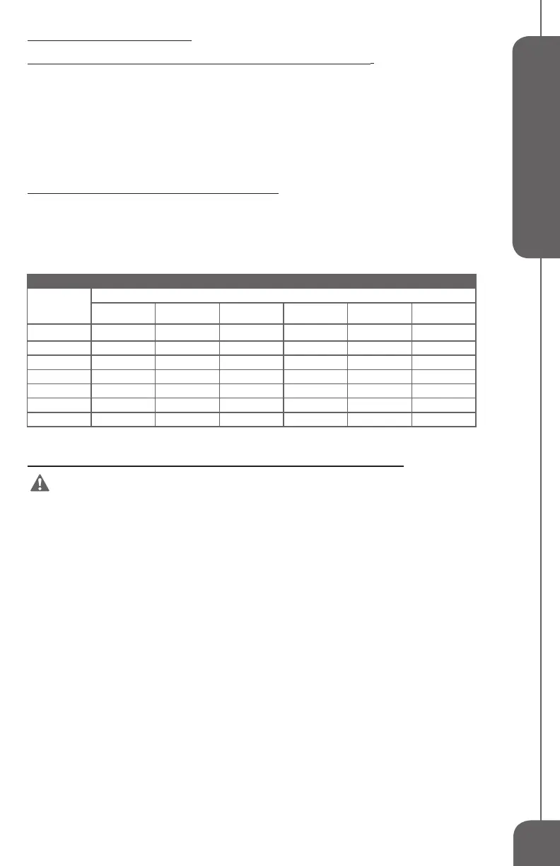 resulting in loss of power and possible tool damage. Refer to the table shown below to determine the required