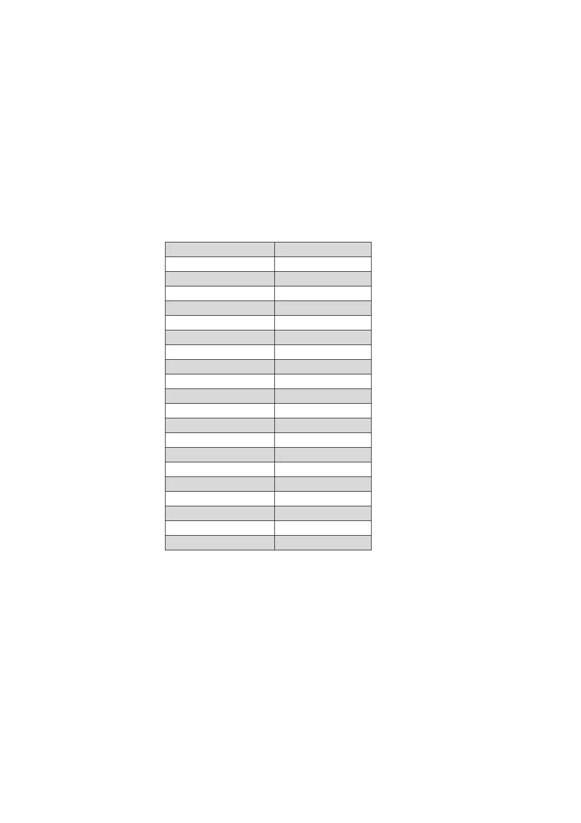 the keys of the following table. The displayed key