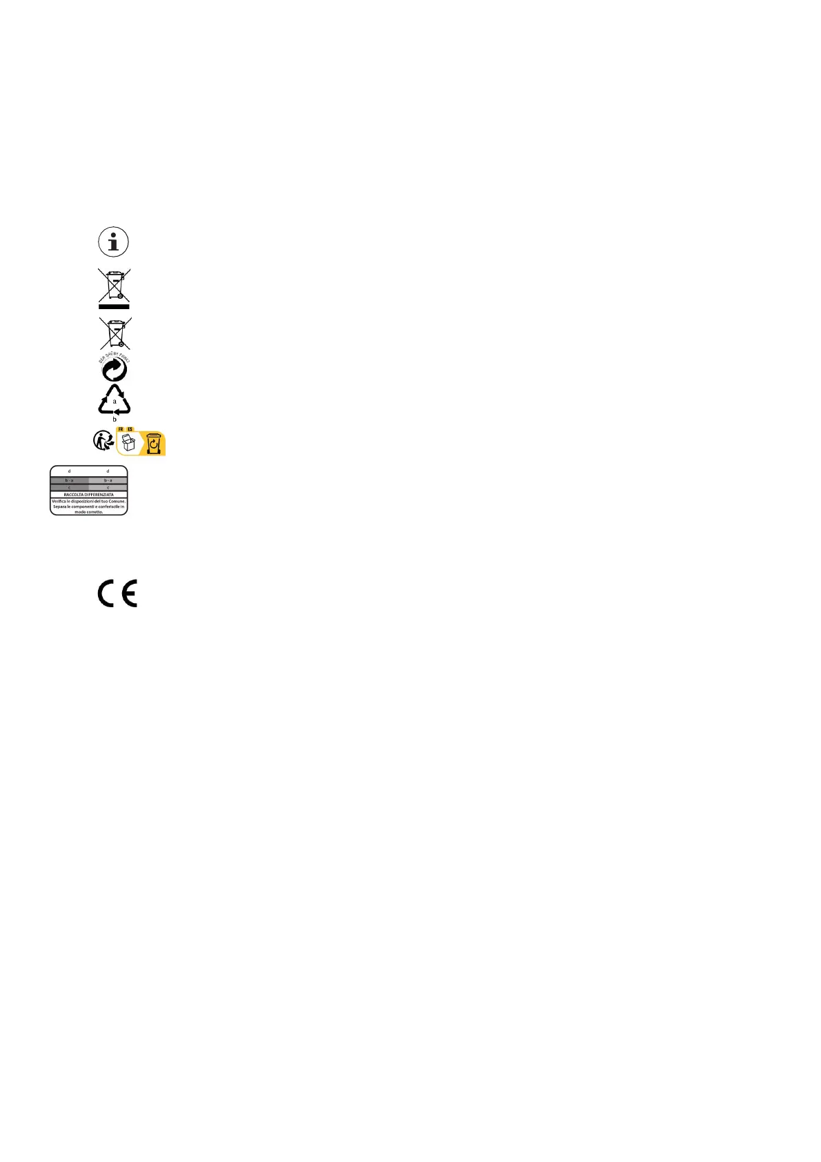 80–98: materialicompositi e (d) tipo di imballaggio. Illogo vale solo per l’Italia.