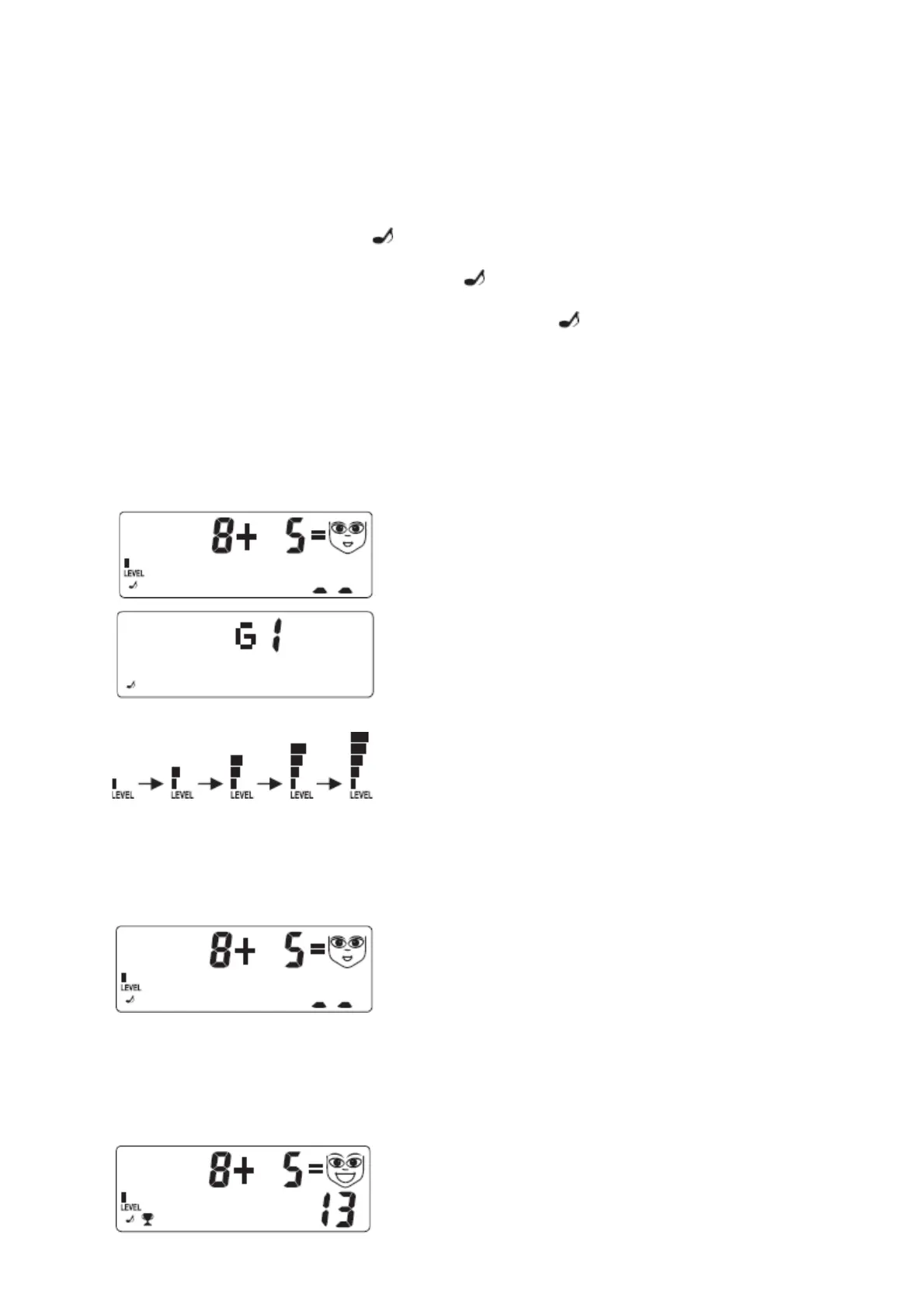 Den Schwierigkeitsgrad (LEVEL) können Sie in 5 Stufen (bei Spiel G3 in 3 Stufen) verändern.