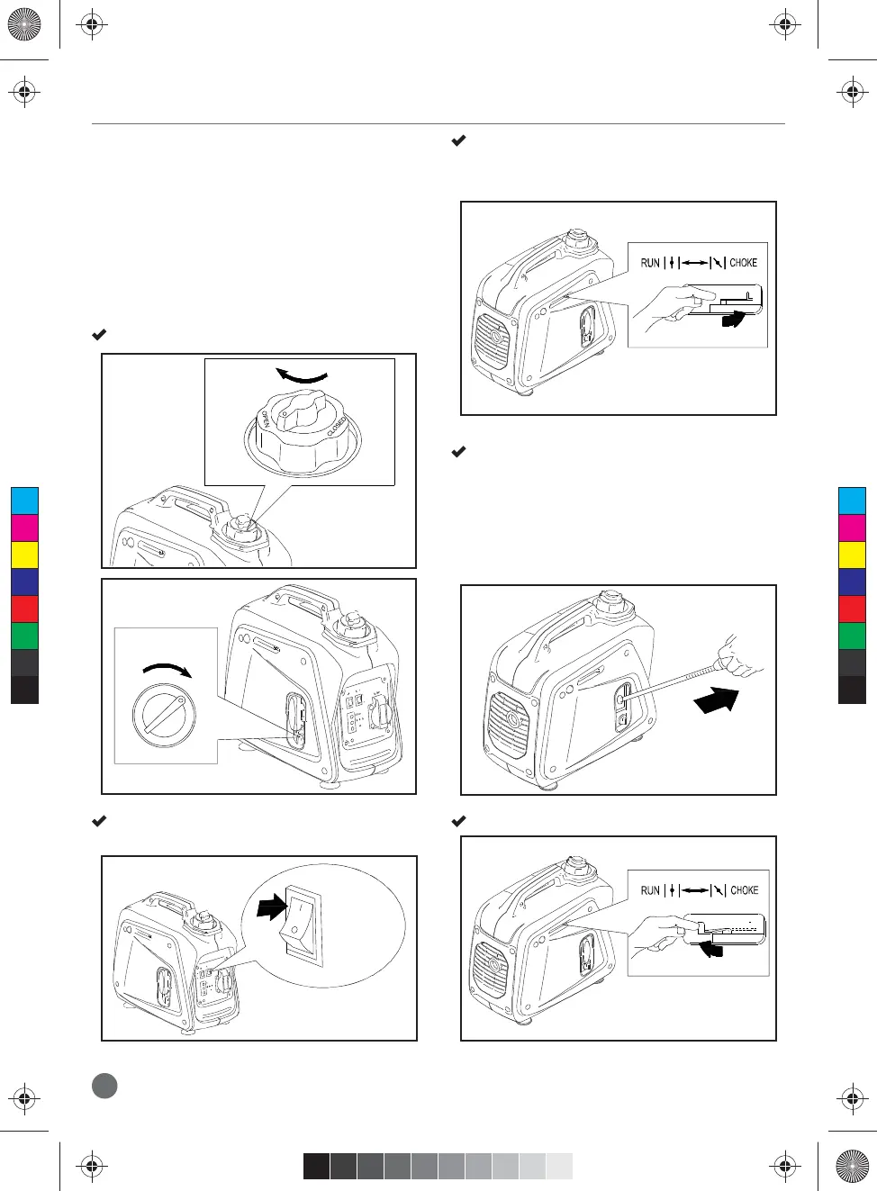 Once started, turn the choke switch to “RUN”