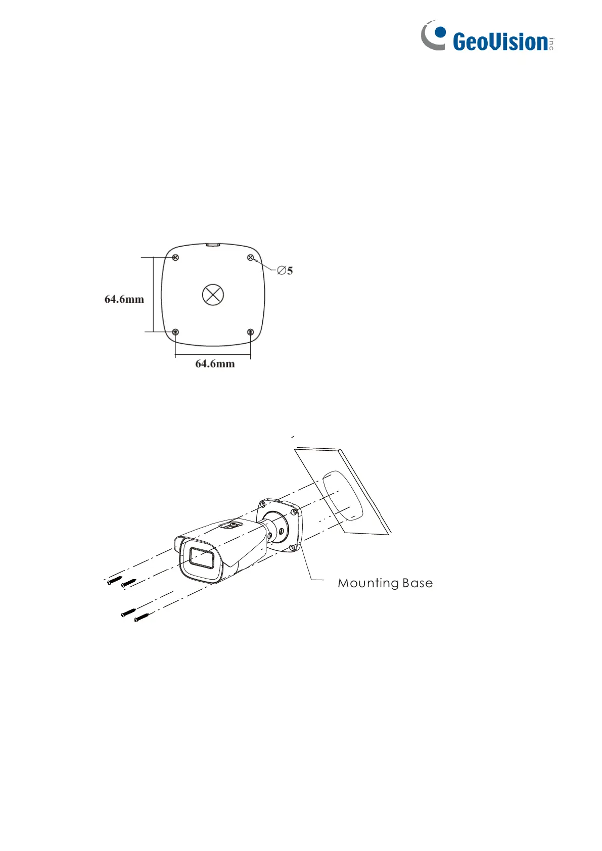 3. Fasten the mounting base to the wall with the screws provided.