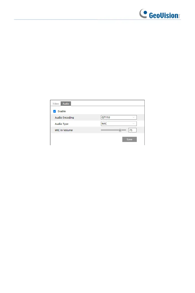 Audio Type: MIC or LIN. (If the internal MIC is supported and used, choose “MIC”. If