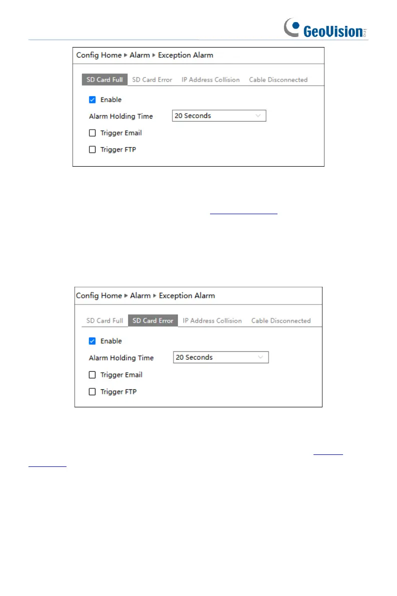 1. Go to Config→Alarm→ Exception Alarm →SD Card Error as shown below.