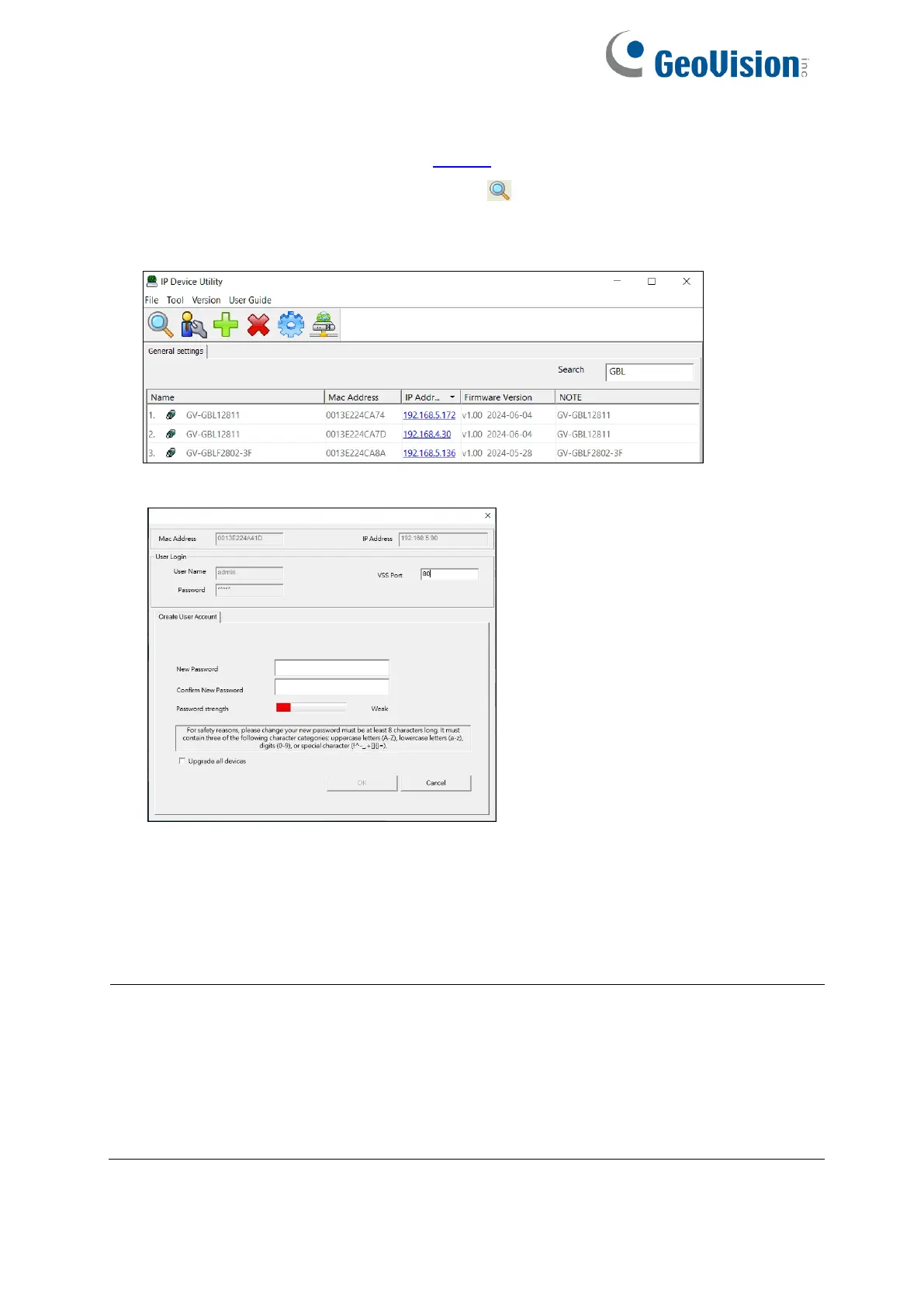 2. On the GV-IP Device Utility window, click the button to search for IP devices