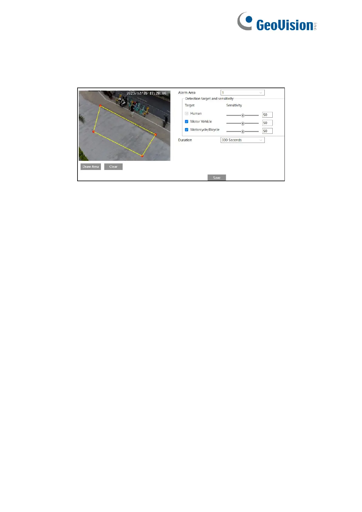 button to stop drawing. Click the “Clear” button to delete the alarm area.