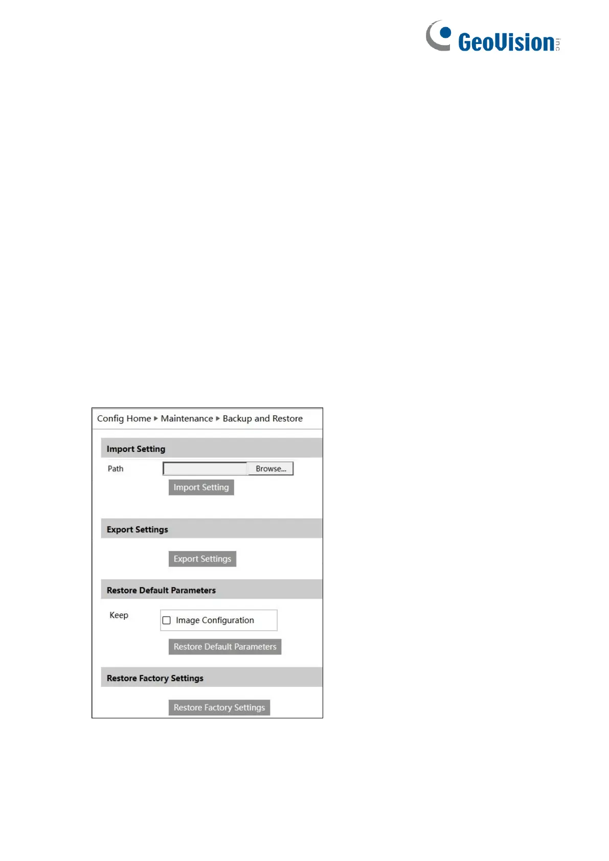 1. On the Web interface, click Config >Maintenance > Backup and Restore.