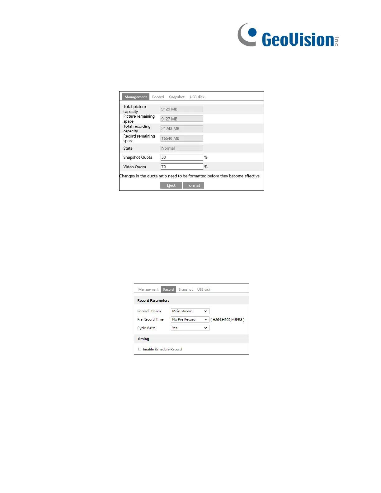 Snapshot Quota: Set the capacity proportion of captured pictures on the SD card.
