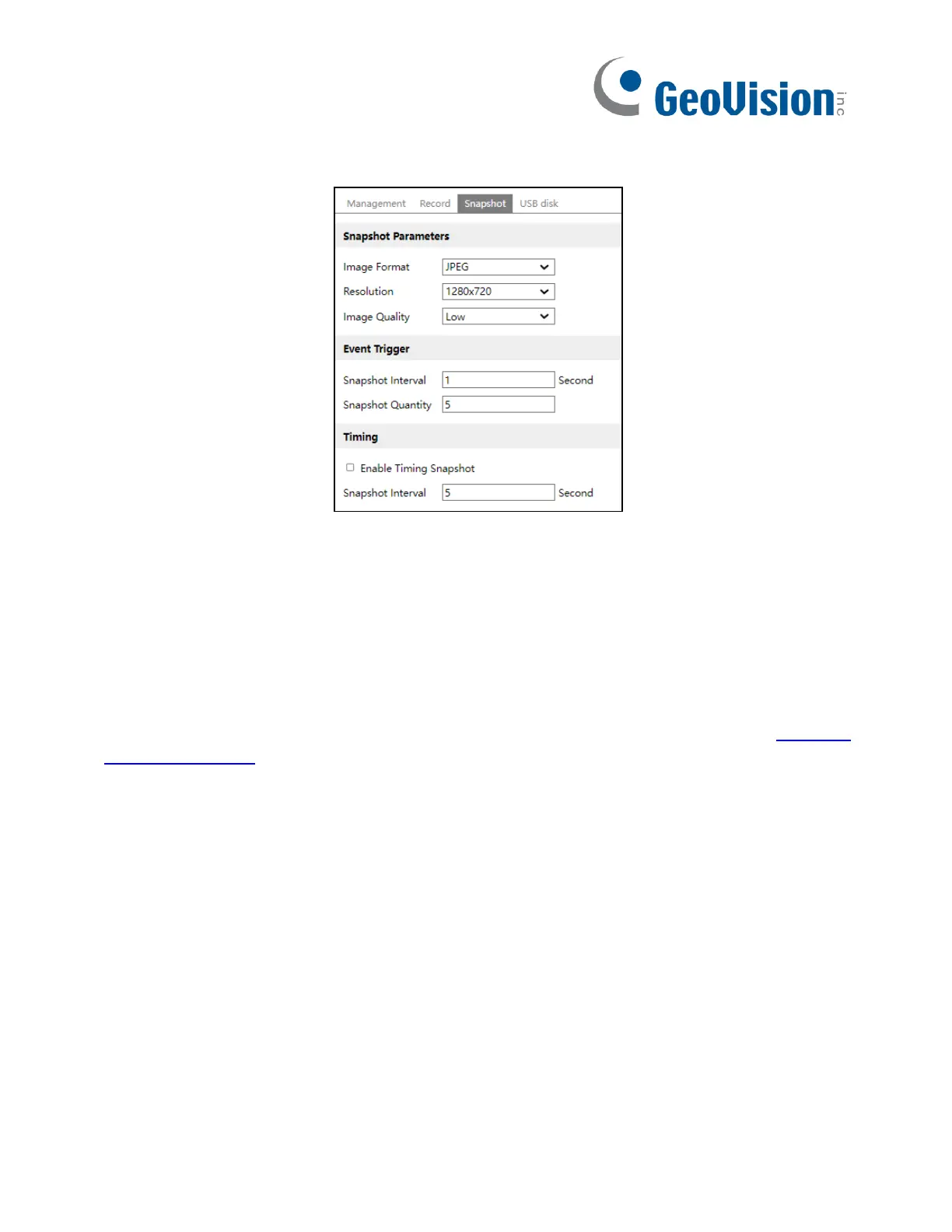 Timing Snapshot: Enable timing snapshot first and then set the snapshot interval and