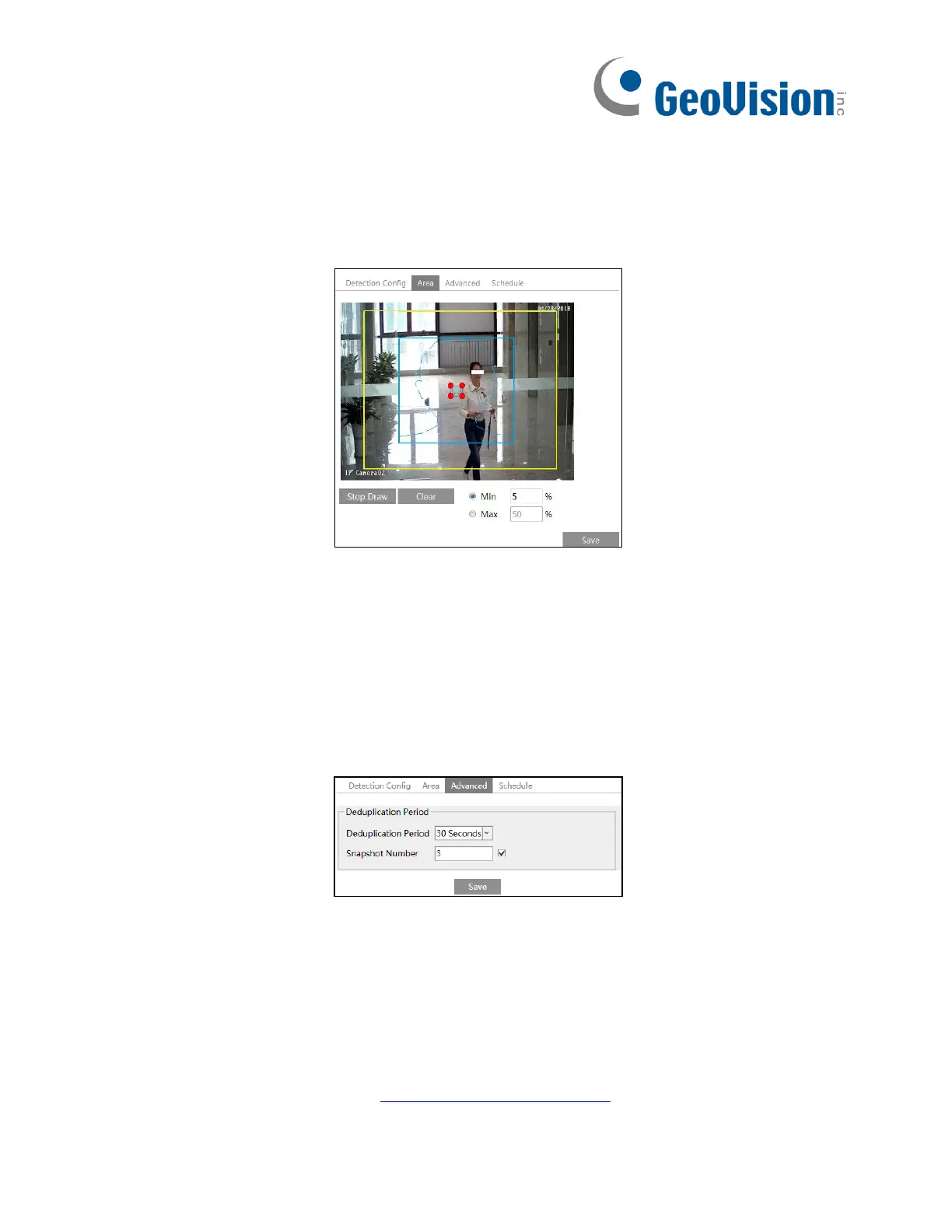 rectangle to change its position. Click “Stop Draw” to stop drawing the area. Click “Clear” to