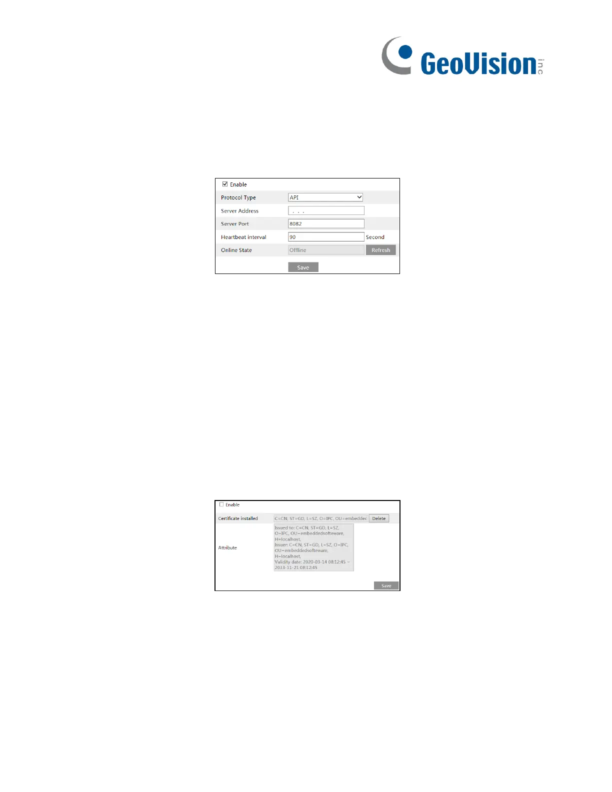 Check “Enable”, select protocol type and then set the server address (IP address/domain