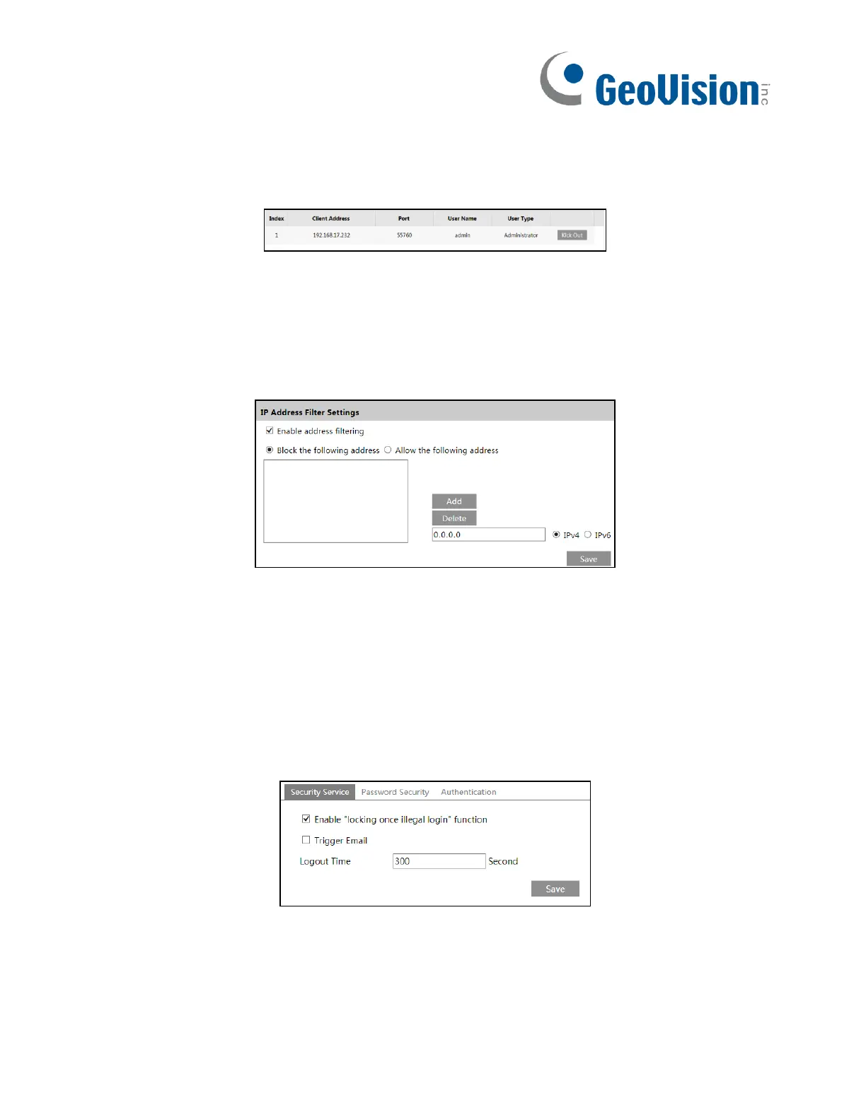 Go to Config→Security→Online User to view the user who is viewing the live video.