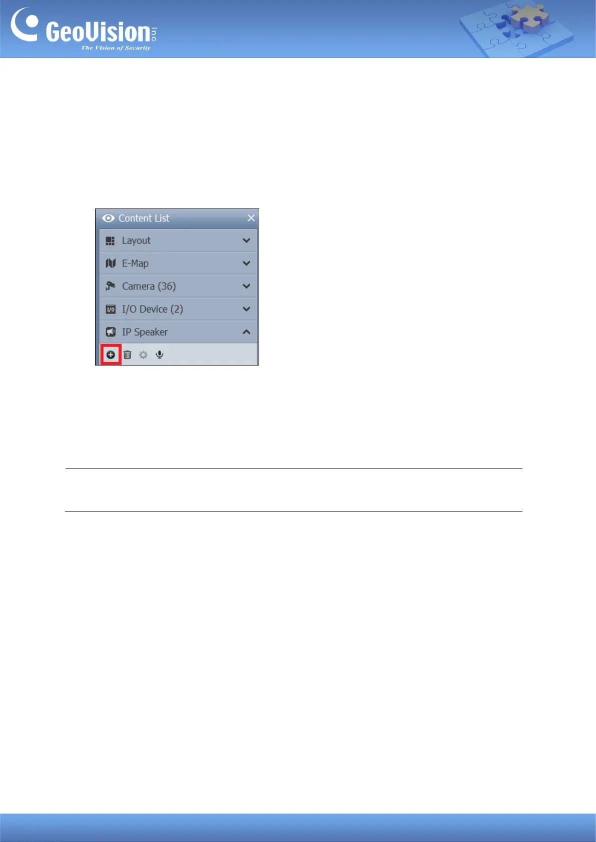 1. Under the IP Speaker of the Content List, click the Add button > Scan Device.