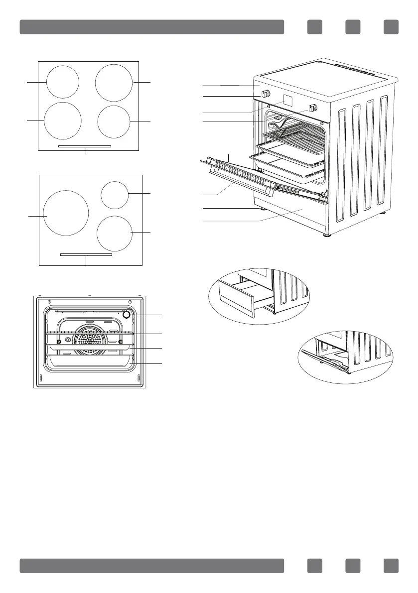 WARNING: This appliance is manufactured in two types, namely with 4 hobs and with 3