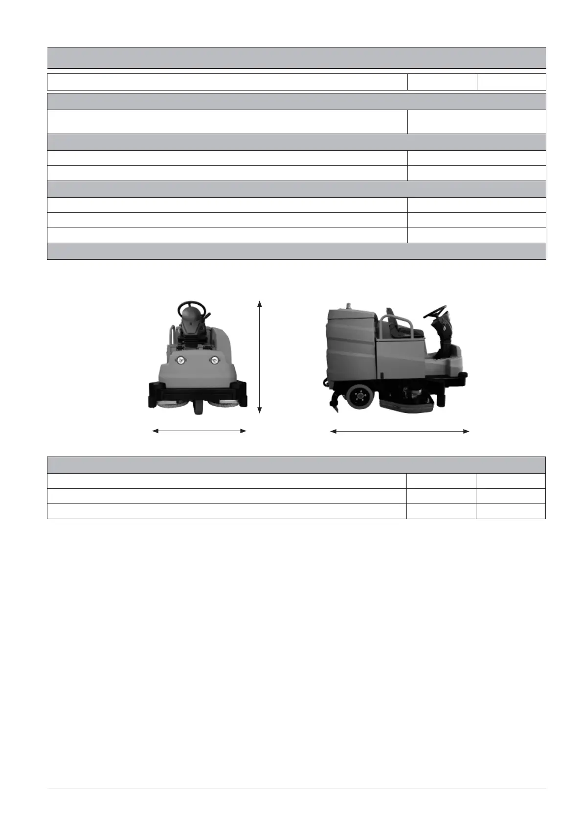 Weight (without operator - with solution tank full and battery) 1560 kg 1595 kg