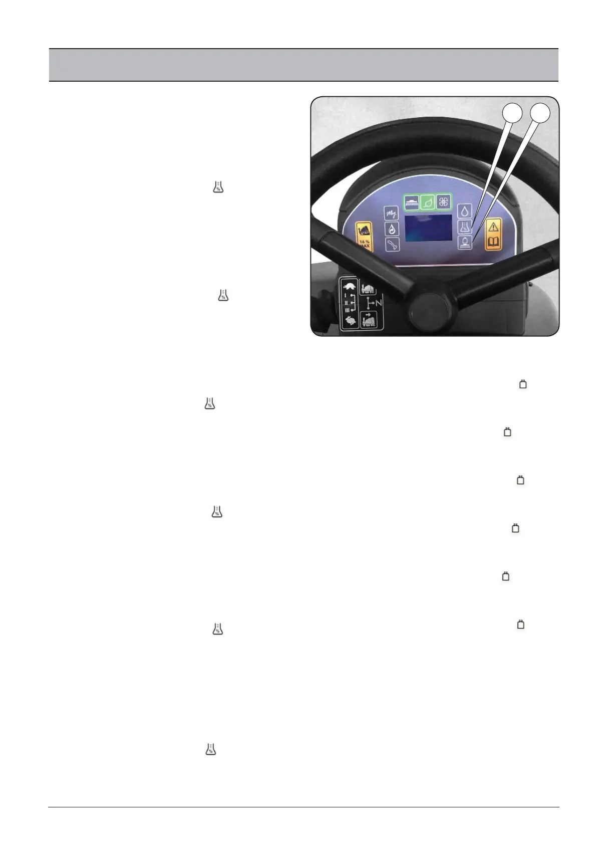 By pressing button 9, you can adjust the pressure of the brushes on the oor. (See