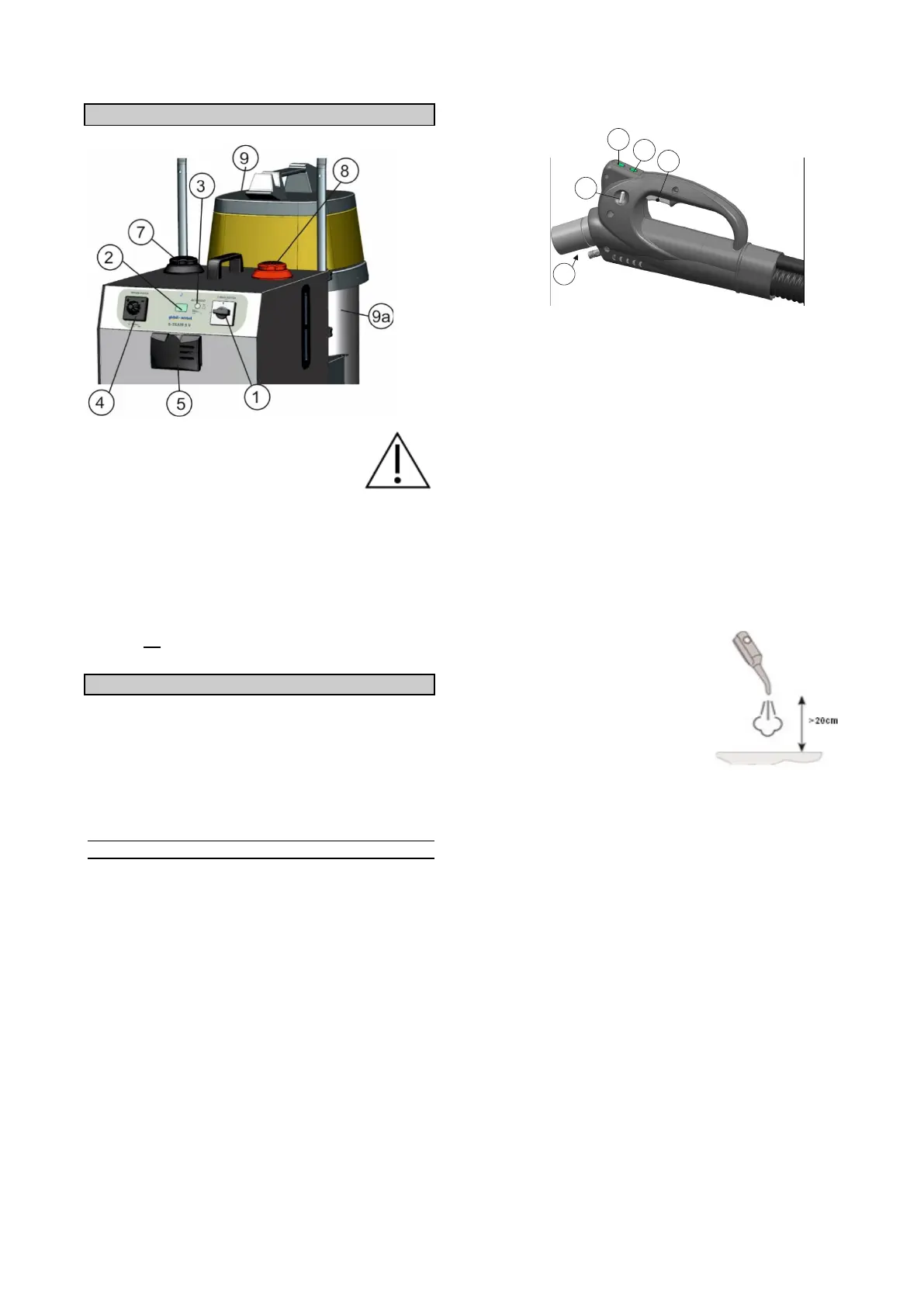 20-40cm com o jato de vapor.