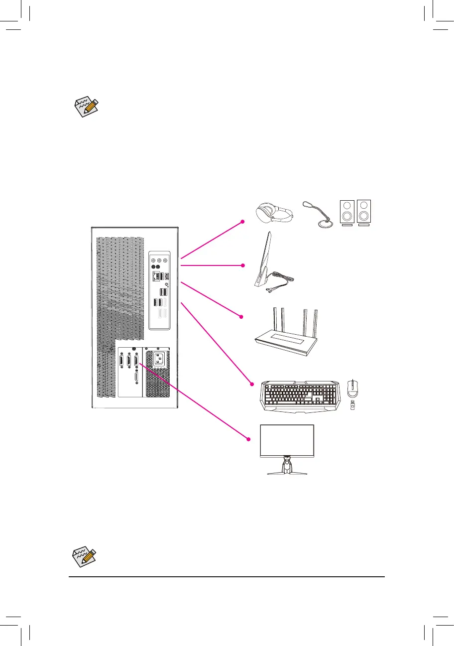 您的集成外设例键盘鼠标、显示器...等连接至台式电脑。
